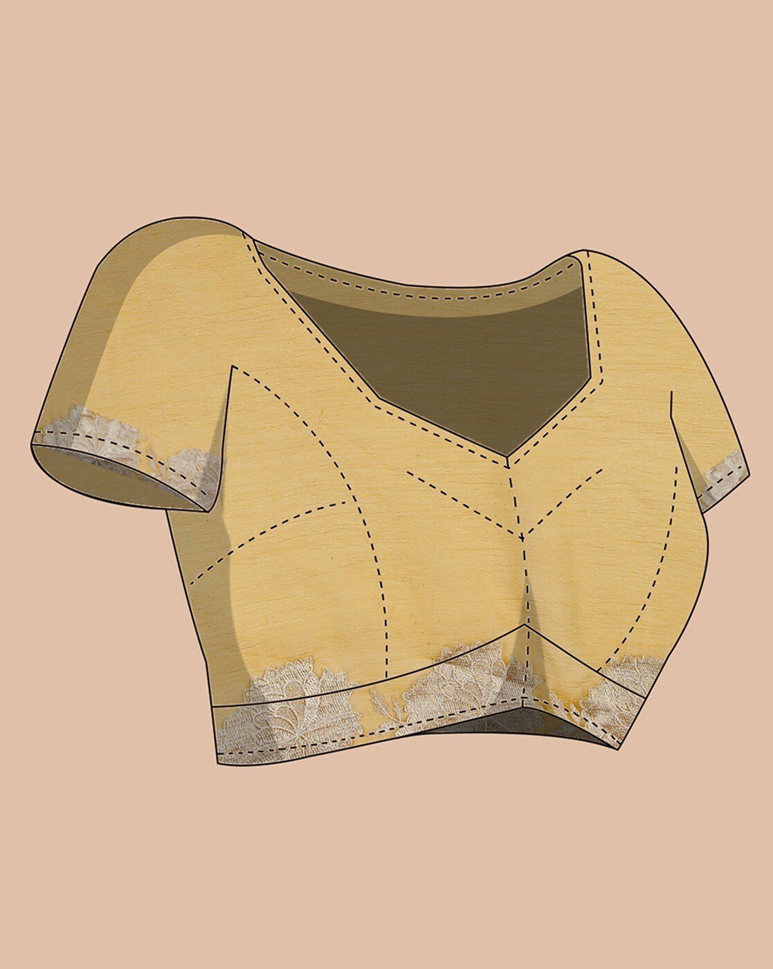 - The last image gives a detailed look of the blouse piece that comes with this saree (The model is wearing a blouse from our in-house wardrobe)